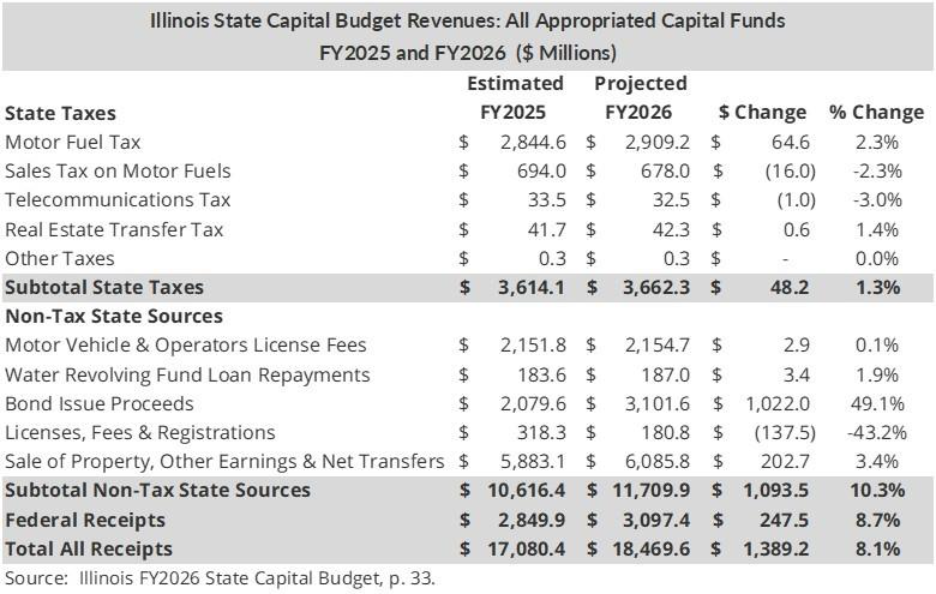 Illinois plans to issue $2.1 billion in new general obligation bonds in FY2026 to advance projects moving into construction.